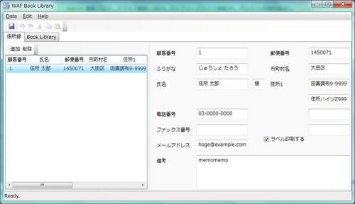 自宅で使っているAccess宛名管理システムのバージョンアップ版をWPFでつくってみています。 それにあたって、WPF Application Framework(以下WAF)ってのをみつけたので、同梱されているサンプルをもとにプロトタイプを作成中。 WAFは、メッセージボックスと…